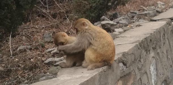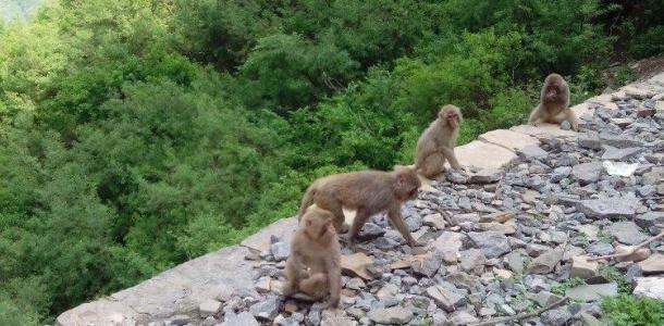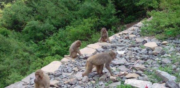 五龙口景区的猴子很聪明,会抢吃的。安全起见拿棍子,有卖的可买可不买,所以拿吃的不要逗它,喂他吃的时候他会盯着你手里的,漫山遍野都是猴子,所以拿吃的的时候小心猴子偷袭,只要不是吃的猴子都不会太感兴趣,拿手机拍照的时候最好小心点,一般没有多大问题。想走路就走路,想坐观光车10元一坐(不是来回)。上金鸡岭有两条路,一个是走台阶将近700多个台阶,上边是电梯来回一人30,爬山的话就台阶的路口往后走一个路口,可以爬金鸡岭2000多米再往后另一个路口是猴子表演的山头步行2个小时,可坐观光车,山顶猴子表演,为小猴子捐款
