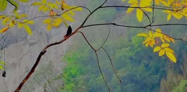 南江大峡谷地处开阳,风景甚佳, 山水依傍,可行可舟。 清泉石上,栈道曲折, 室气清新,鸟鸣树丛。 木屋别趣,拓展亦然, 朝暮不同,举家之走。