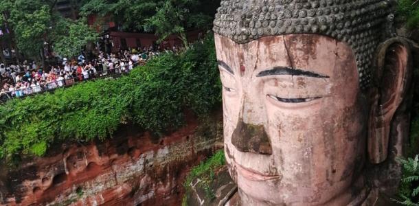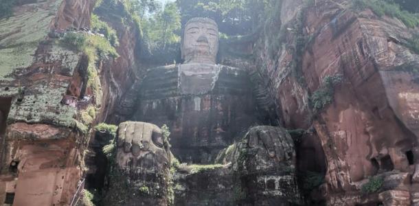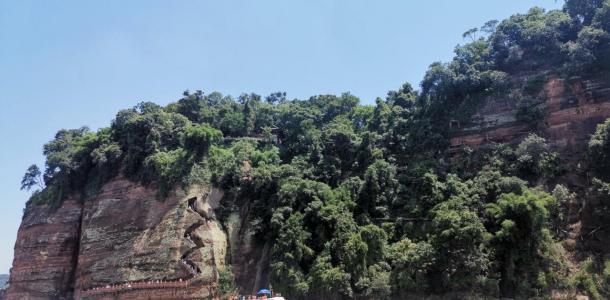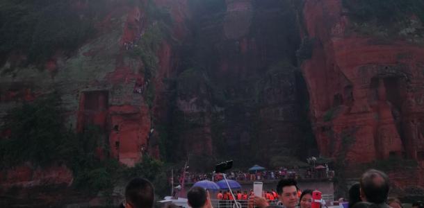乐山大佛有船游和步行游览两种方式,我选择了前者。因为步行游览离得太近,没法和大佛全身合影。船游很挑时间的,不同时间效果不一样,建议大家做好攻略。另外船游节约时间。当然步行也有步行的优点。
