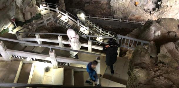 大石围天坑群景色相当好,冬天旅行人少景美,景区内全程都有观光车接送,最晚一班是17点,会在流星天坑、神木天坑等观景台停下来给我们拍照,讲解员小姐姐也非常耐心。最后一个溶洞叫水帘洞,确实有不少小水瀑从洞顶落下。