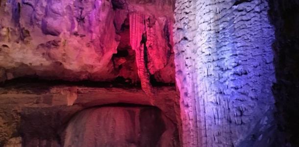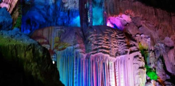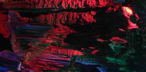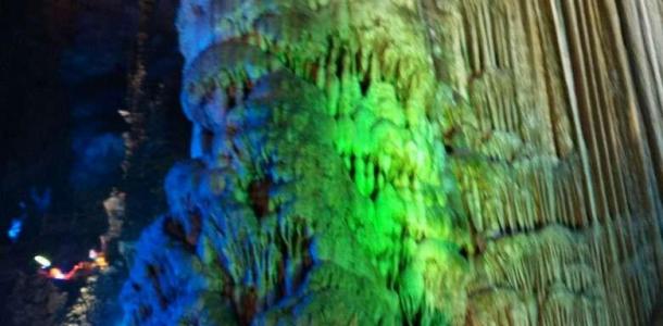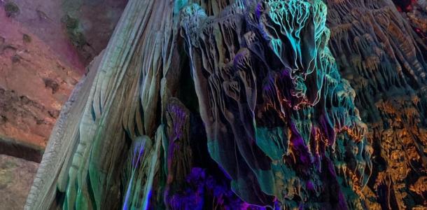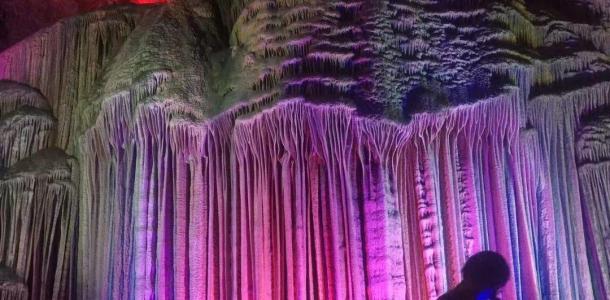 银子岩在洞外没有发现什么,但是到了洞里边完全不一样,这里的灯光确实漂亮,加上溶洞里面的形状确实是千姿百态,而且都是那种规模比较大,比较壮观的那种。