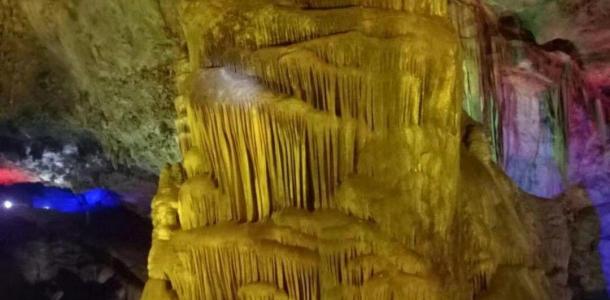 鸡冠洞跟朋友一起去的,真的太好看了,不过去的朋友一定要穿防滑的鞋,里面有点湿滑,一定要小心哦,整体是先下后上,特别壮观,灯光也很好,岩石非常美丽,而且我觉得适合跟朋友一起去,真的太好看,下次去栾川还要去。