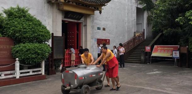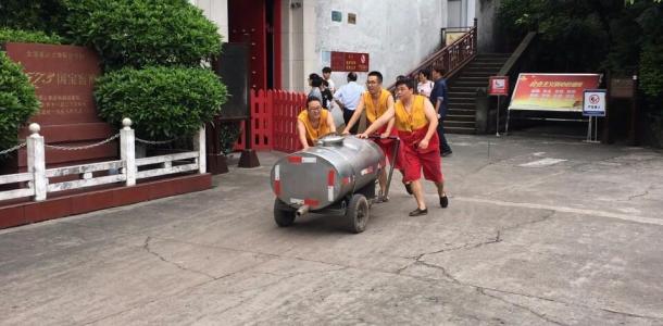 整个泸州国宝窖池景区并不大,刚到景点门口,便闻到一股浓重的酱香味,就是那种大酱的味道,讲解员说那是因为酒曲发酵的原因,进入后,发现是园林式的建筑风格,最远处是整个酿酒过程的石刻画。进入窖池观赏区后,可以看到整个老窖酿酒的过程,有工人师傅们正在生产,幸运的见到老窖原浆从“牛尾”出流出。