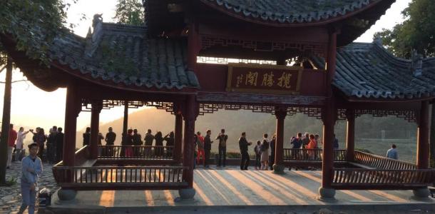 乌石村村里砌房的石头都是黑色的,比较特别。 村子本身比较普通,有意思的是村子可以看日出与梯田。 五点五十到的揽胜阁,已有不少人在此等候。六点零五分左右,太阳逐渐从对面的山头跳出,真是光芒四射,等日出的人们都禁不住欢呼。