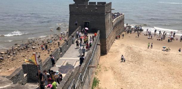 到山海关那一定得去老龙头看看,因为他这个毕竟是伸到海里的一滴长城,嗯,我当时就想啊,你说建这样长城的目的是不是为了还是为了防止这个小日本鬼子从里边儿打过来呀,看着可能也不错吧。