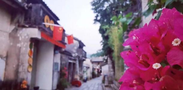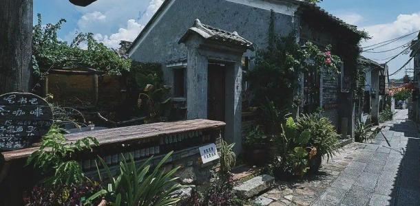 大鹏所城原是古代军事堡垒,南北各有一个城墙头,城墙之间是一条窄窄的干道,密集分布着很多院落,士兵家宅和将军府院宅坐落其中,登到南城墙上可以看到不远处的海。 现在这里看上去更像一片古朴的村落建筑群,古朴到砖石之间花花草草的开放都显得很热烈。 将军府免费参观,容易走过…跟其他院落外观上没有很大区别,进去却发现里面有多个不同功能分区的房间套间。 广场那里徐徐微风扫过,是不错的休息地,有清水师船的科普黑白画,有一整排像仓库的门院。 从北城门走到南城门一路往南就到了海边,蓝天白云下遥看对面的山丘群,不失为一处美丽的
