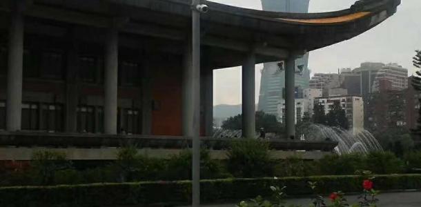我们到达国父纪念馆的时候已经有点晚了,天色渐渐暗了下来。我们也只好在门口看看里面,外面拍拍照。国父纪念馆是观赏101大厦的最佳地点,从这里可以看到101大厦的雄姿。门口有很多跳舞的年轻人,这里很欢乐。