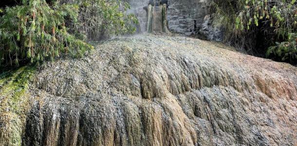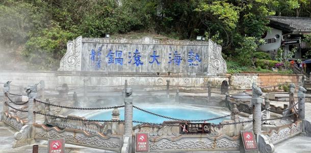 这里就是腾冲火山地热地质公园里的大滚锅,骑电瓶车上去的最后一站也是大部分人通过人行道到达热海大滚锅景点。海拔大概在2千米,大滚锅温度可以接近100度。云南18怪,鸡蛋串着卖。一般来说在门口买的鸡蛋就是在这里来煮的,但是不