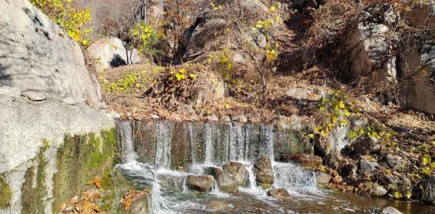 盘山雄伟险峻,峰峦叠嶂,云海松涛,水石清奇,幽深迷人,以“五峰”、“八石”、“三盘之胜”而奇特称绝,不虚此行!前天下的雨,今天瀑布非常美,小溪潺潺,盘山的松树美,水更美!配上秋色,树叶绿黄红的渐变,随手一拍就成片