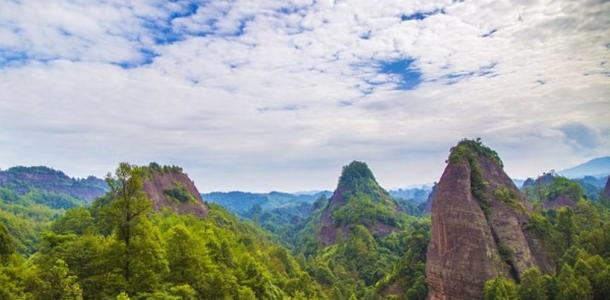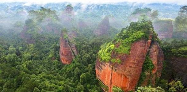 万佛山,丹霞地貌区位于湘、桂、黔三省区交界处的湖南怀化市通道侗族自治县万佛山镇太平岩村,距离县城双江20公里,包括7个景区,面积100.83平方公里。距县城20公里,海拔597.9米,是全国最大的丹霞峰林地貌之一,