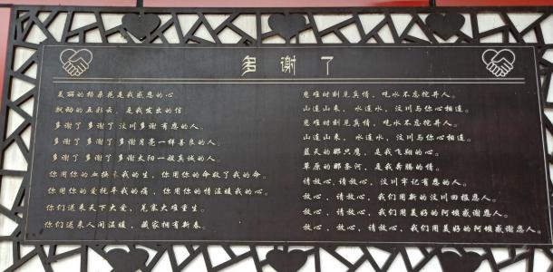 看见汶川映秀广场上跳着锅庄的映秀市民,看见大屏幕上不停地闪烁的汶川新变化,还有“我在汶川等你”、“汶川我来了”等等字幕,不由得感慨万千,映秀,这个汶川特大地震的震源地,没有全国人民的援助,没有广东人民的大力援建,就没有美丽汶川的今天,四川人民永远感恩全国人民的帮助!