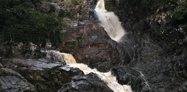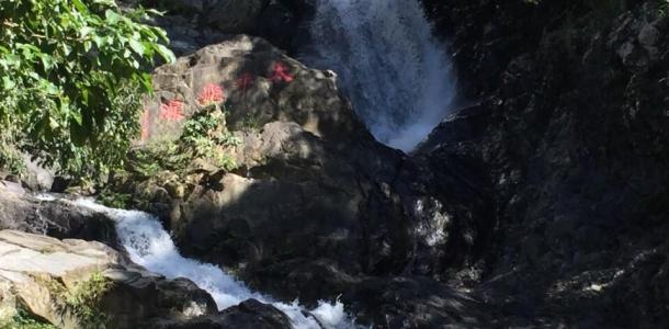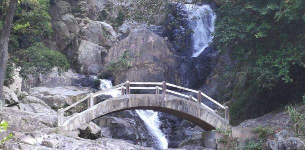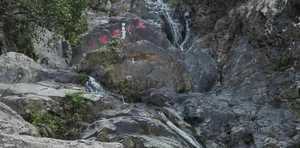 太平飞瀑路过南国夏宫,曾是当前付主席林彪的休养别院,景色怡人。飞瀑上方有凉亭,瀑布蜿蜒而下,击起些许浪花。中间刻有太平飞瀑四个红字下有小桥一座,是不少游客拍照留念的好地方。