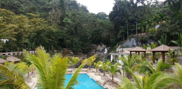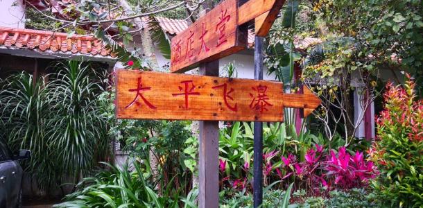 导航南国夏宫就到了太平山瀑布 进来是餐厅 酒店。往里走就是太平山瀑布了。整体感觉不错 空气好 温度适宜