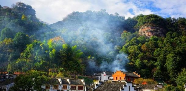 安徽休宁有个齐云山不错,名气不大,确是个道教文化丰富的山!山上树木茂盛,环境优美,去的时候云雾缭绕,好像在仙境,一路上看到很多道观!