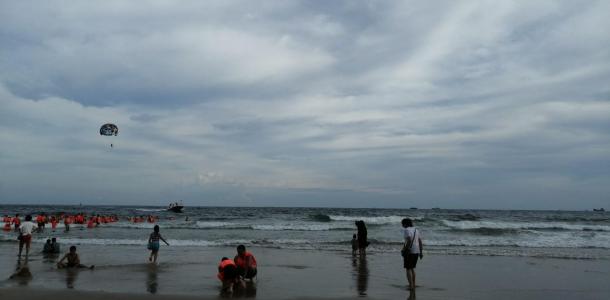 海陵岛这边天气晴朗的话,还是真的蛮不错,可以媲美三亚那边的海浪,但是在这里天气不好的时候就比较的普通,在这边的娱乐设施,现在是越来越好,楼盘也很多。