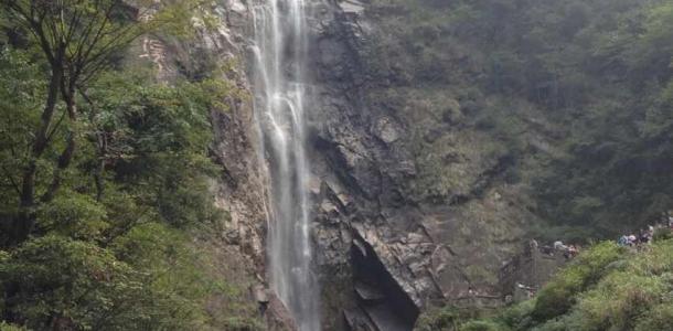 明月山门前的广场做的很漂亮,坐缆车上山80元/每人,建议别坐,因为徒步登山途中景色美不胜收。九级瀑布,最下一级是云谷飞瀑,高50多米,壮观。