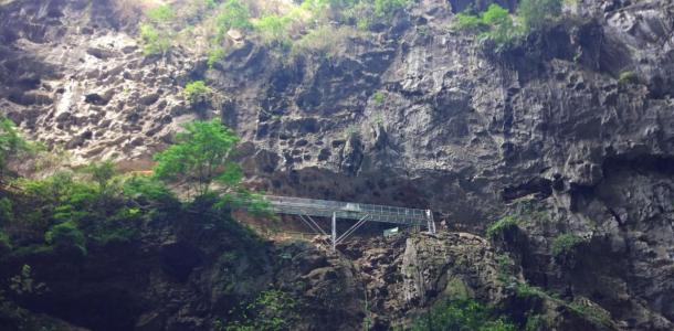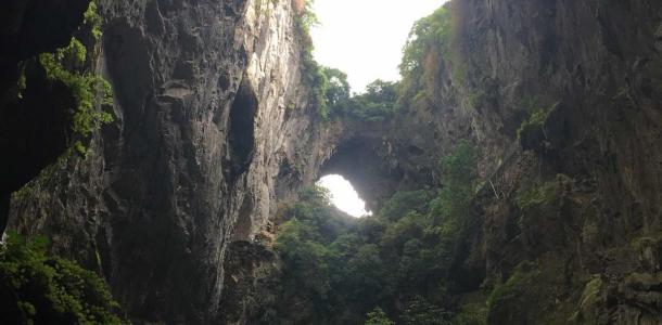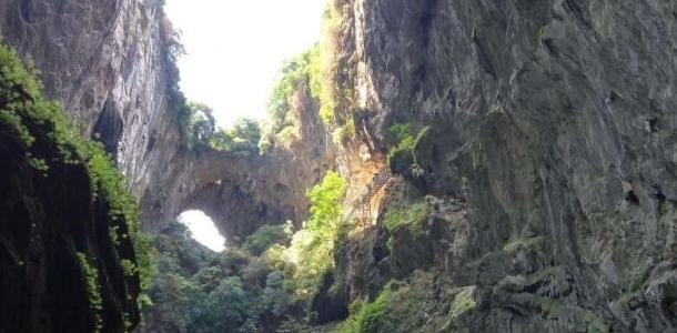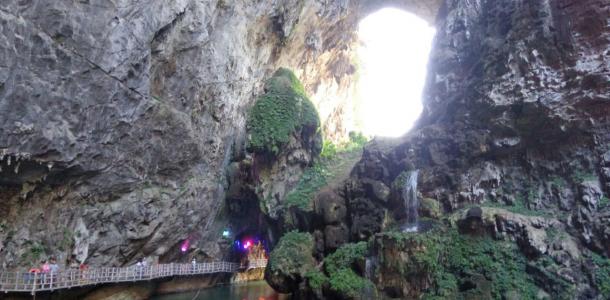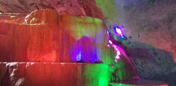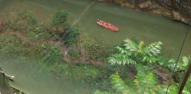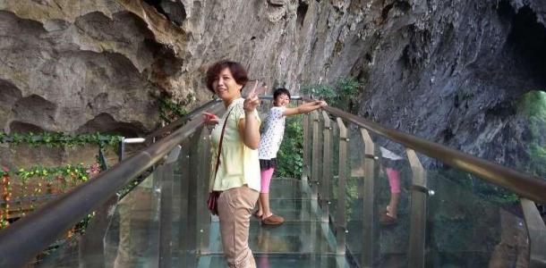 洞天仙境就一个原始隧道,通过去,洞里蓄了水流,可以行小艇,75元门票包含回程船票。洞里面山顶是通的,有个小小的水帘瀑布流下了。洞中高处有个十米左右长的玻璃栈道,几二十分钟就逛完了。