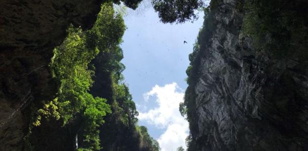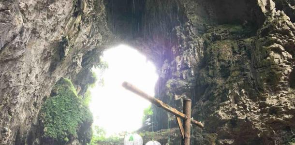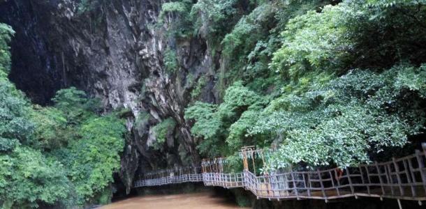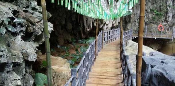 洞天仙境空气清新,环境优美,值得一去。洞里最大的特色就是多燕子,充满燕子的叫声,不时还有燕子屎从天而降了,极有可以中头奖哦!洞的上部有个迷你的超少超短玻璃栈道。水很黄还不时有生活**从洞里流出来,水位比较高,游船就停止服务了,只能走路进去,原路返回出来!景点很小,大概一个小时能走完。