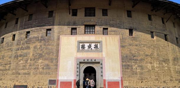 振成楼又名八卦楼,是永定土楼中的代表作,被尊为“土楼王子”。由洪坑林氏21世林鸿超兄弟于民国元年(1912年)建造,在客家土楼中属于比较年轻的一座。