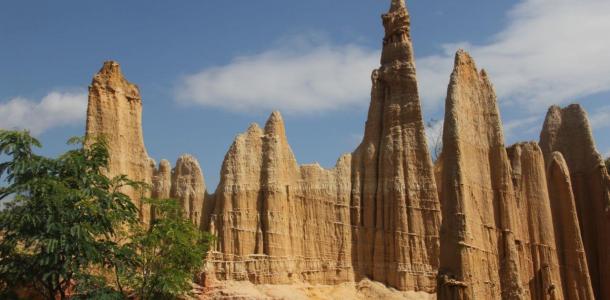元谋土林这里土林高大挺拔,造型多似古代宫庭殿堂,宏伟壮丽。“元帅府”则以动物造型为特色,这里的土柱形态酷似各种飞禽走兽,惟妙惟肖。而“古堡幽情”的景观色彩丰富,以赤、褐、黑三色土帽盖顶而著称。