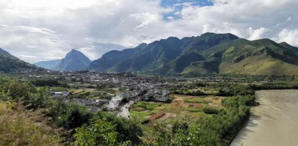 长江在长江第一湾这里一改之前与澜沧江、怒江齐头往南的方向,改为“滚滚长江东逝水” 但这个地方不太好找,不是景点,在路边一家饭店后门进入山路,爬上这个第一弯对面的山岗上才能看的到俯视的全貌。