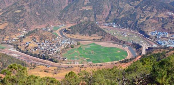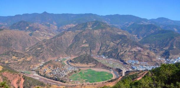 沘江水在诺邓太极村这里绕出一个“S”型的大湾子,形成了类似道家“太极图”的天然地貌奇观。在这天然太极图东面有诺邓河流入,古人称之为“太极锁水”。现在山上俯瞰,太极图尽收眼底,不禁感叹大自然的鬼斧神工!