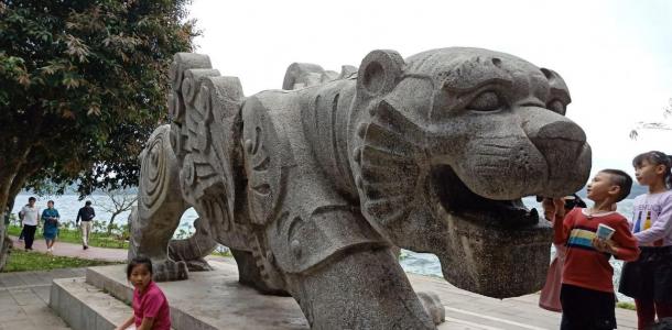 湖光岩风景区是湛江市最著名的景点,风景区青山绿水,风光秀丽,里面的空气非常清新,富含的负离子高达105688个/立方厘米,在天然氧吧里,沐浴森林浴洗洗肺,呼吸呼吸再呼吸…这个火山口湖很大,湖面很干净,靠近岸边也不见枯枝落叶。游客不少,大多都沿着湖边的小道绕湖走。