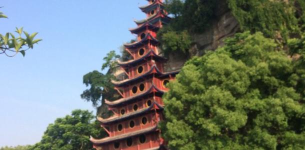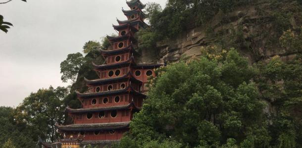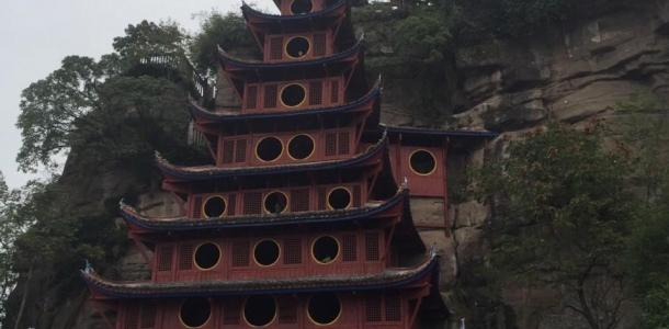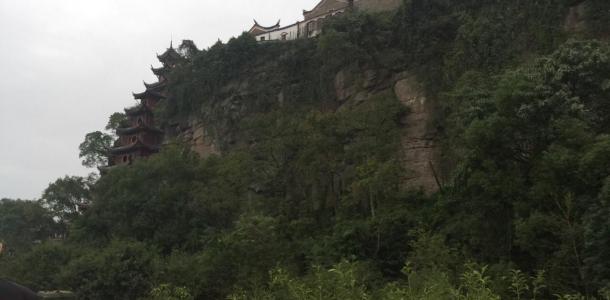 石宝寨位于重庆境内,在长江北岸边,乘邮轮玩三峡的时候都会路过,乘客们可以选择上岸游览。远望石宝寨塔楼,仿佛嵌在悬崖上似的,沿着山而建,每层都有飞檐的造型。近看这个塔楼更是奇特,好像叠积木似的。据说塔楼高12层,但下面9层比较显眼,后面的3层是后来修补的,整个塔都是木质结构。