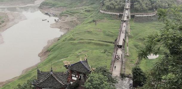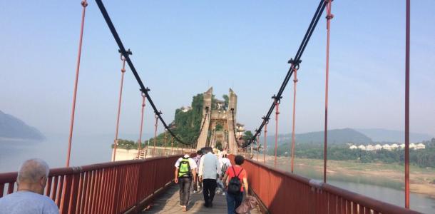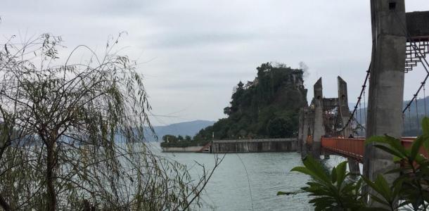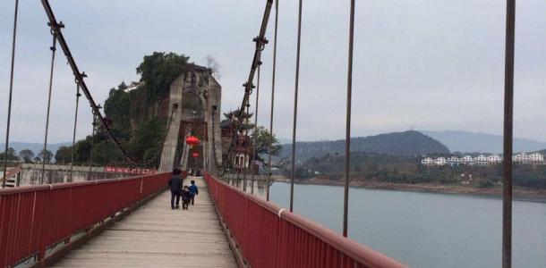 石宝寨在重庆的一个孤岛上,这里还住着一些居民,不过人非常少,他们唯一的收入就是旅游了,因为岛屿很小,旅游山峰就占据了大部分,基本不能农作,不过地方虽然很小,却也是非常值得一观。石宝寨在长江边,从一条非常长的铁索就能过去,铁索以红色为主,让人想起了很多韩国,那里大桥都是这中艳丽的风格的。走在桥上会有一阵阵的风吹过,非常舒服。