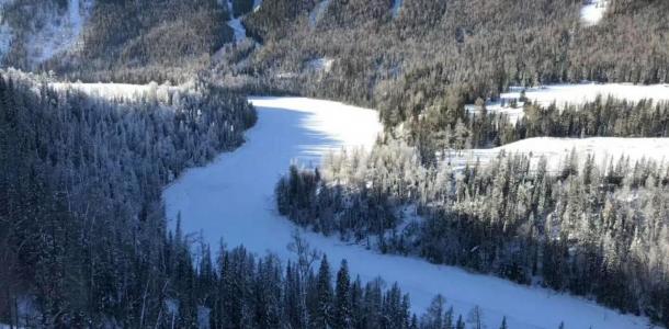 可可托海,哈萨克语的意思为“绿色的丛林”。蒙古语,意为“蓝色的河湾”。这里曾因矿产资源丰富而举世闻名,这里是全国第二冷极,水电部门在这里测出了零下60℃的数据,但未被认可。但在2016年被国家发展改革委、财政部以及住建部
