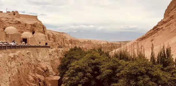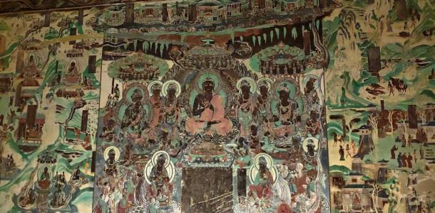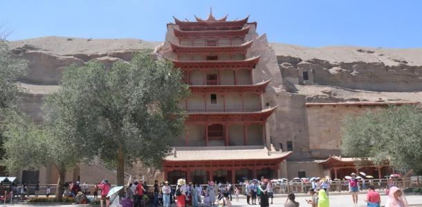 被载入《世界文化遗产名录》的东方佛教文化圣地-莫高窟,现今保存有735个石窟,壁画1045幅,塑像2500尊,色彩绚丽,形象逼真,栩栩如生,可谓是一个精美绝伦的佛教艺术画廊,一部价值连城的社会历史文献。壁画4.5万平方米、是世界上现