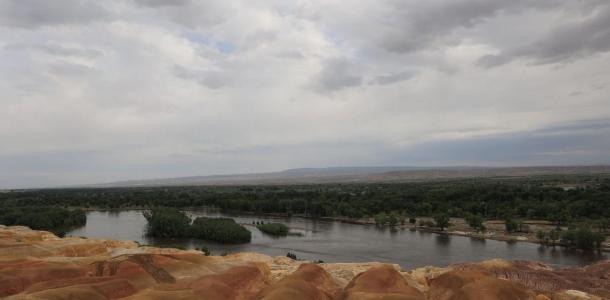五彩滩位于阿勒泰布尔津县境内,地处我国唯一注入北冰洋的额尔齐斯河北岸的一、二级阶地上,是新疆最美的雅丹地貌,由于它色彩绚烂,形状缤纷而得名。经过千万年风蚀雨剥以及河水的冲刷,在几乎寸草不生的河滩上出现了红、绿、紫