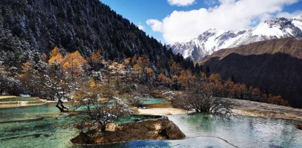 黄龙风景名胜区是中国唯一保护完好的高原湿地,地貌特征是山雄峡峻。因沟中有许多彩池,随着周围景色变化和阳光照射角度变化变幻出五彩的颜色,被誉为“人间瑶池”,黄龙以彩池、雪山、峡谷、森林“四绝”著称于世,再加上滩流、