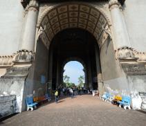 老挝万象的凯旋门坐落在市区正中心。远看外型与法国的凯旋门有些类似,也是连接着万象最繁华的大街,但是规模小很多,近看会发现与法国的凯旋门大相径庭,老挝凯旋门上面都是雕刻有佛像及神话故事中的人物等,纪念老挝人民解放独立。