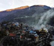 西索民居的清晨,是那样的默默静好。当第一缕阳光照射在村寨对面的山头上,村子里早已炊烟袅袅,金色屋顶的寺庙里传出阵阵念经声。我登上了村寨一头的半山坡上,记录下西索村藏寨美丽的一刻。