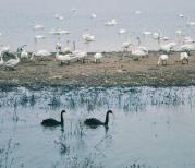天鹅湖国家城市湿地公园,在三门峡市区的西侧。冬日的阳光下,湛蓝水面和水边金色的芦苇,映衬着湖面上洁白的大天鹅,宛如盛开出千朵游动着的雪莲。漫步在观鸟栈道上,很多天鹅就在离岸不远处,时而成双成对、悠闲游弋,时而倒立翻滚、觅食饱腹,时而列队出行、击水追逐,时而昂首展翅、直刺蓝天……这场面,就像一幕幕生动的电影画面,一幅幅灵动的美术佳作。