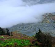 梦寐以求的哈尼族多依树梯田游览完毕,意犹未尽,在多依树停留时间较长,由于天气原因,在短短的1小时左右才见到真面目,秀美出场,云雾缭绕拨弄五彩斑斓的一面面镜子,瞬间透露出大地赐予人类最自然的调色板,自己自身于如梦如幻的人间仙境!希望再与您想约!